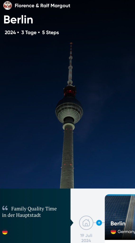 Diesmal galt es Omas Geburtstagsgeschenk einzulösen. So verbrachten wir u.a. einen wunderschönen Tag in Berlins Gärten der Welt. Dieses einzigartige riesige Gelände ist mit seiner schönen Flora und Fauna und landestypische liebevoll gestalteten Gärten wirklich sehr zu empfehlen. Mit Seilbahn, Bobbahn und Cafés ist für jeden was dabei. Als Abschluss gab es noch eine große Überraschung und ordentlich was zu feiern … Fotos & Stories auf Polarsteps.