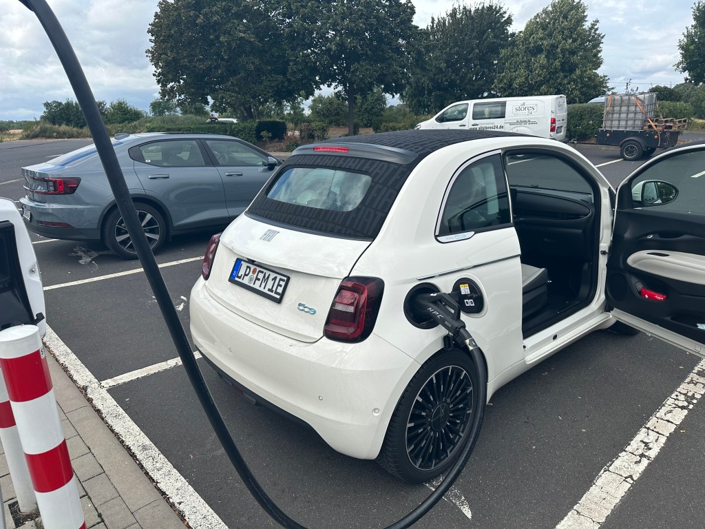 Die für mich bisher schönste Verkaufsstelle. Die Autos auf dem Dach sieht man schon von der Autobahn. Für Kunden gibt es einen kleinen Stellplatz mit Versorgung.